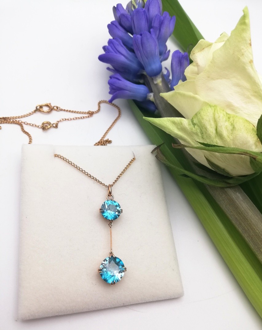 Antique Edwardian lavalier drop pendant necklace in 9ct gold and with large zircons- fabulous!