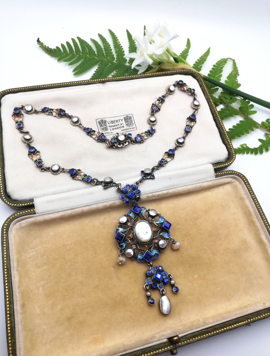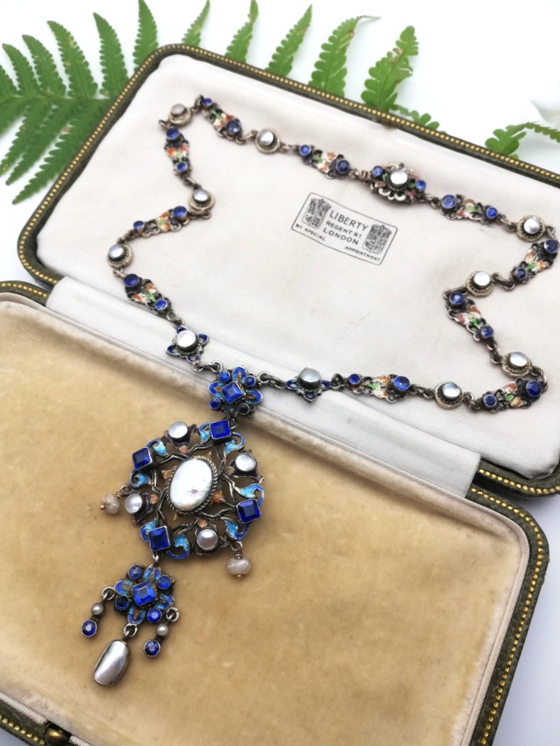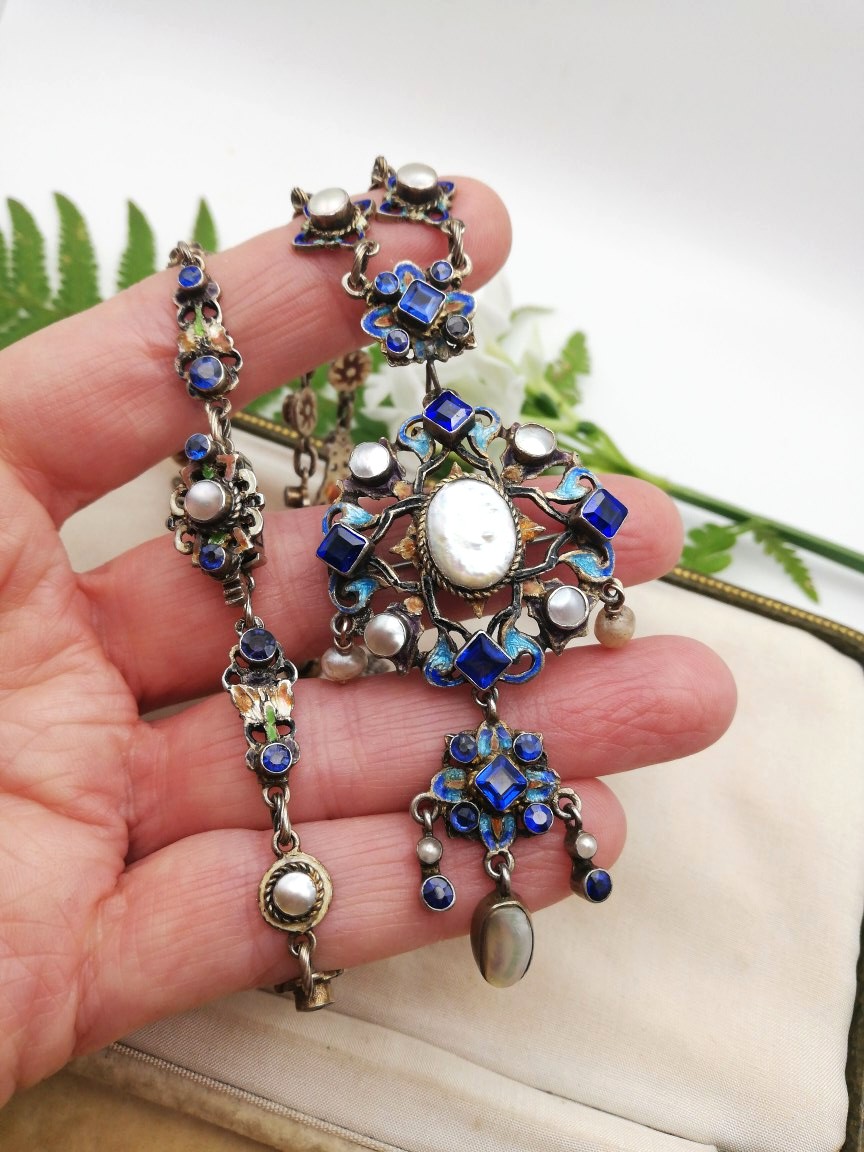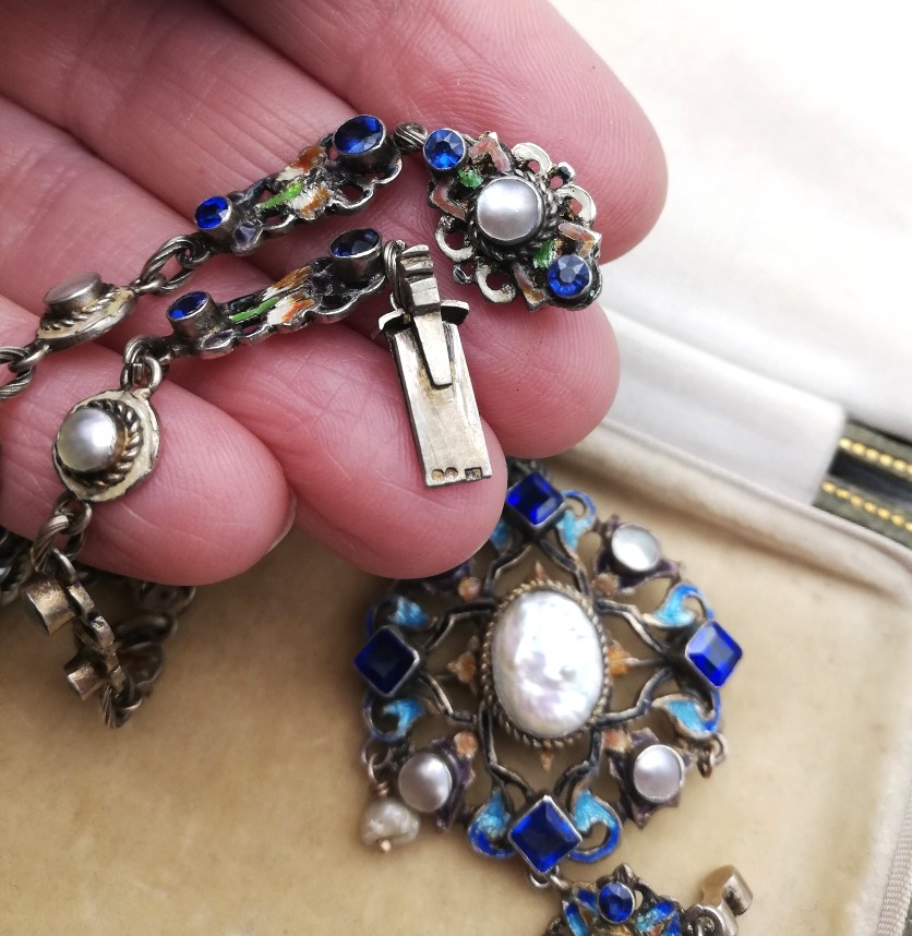 This is one of the finest examples of an Austro Hungarian necklace that I have come across, not least because it features a blues and white combination which is much rarer to find. It is also, pleasingly, fully marked by the maker HB and with the marks for Vienna.