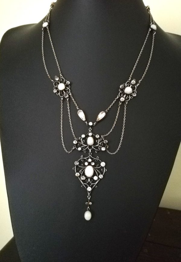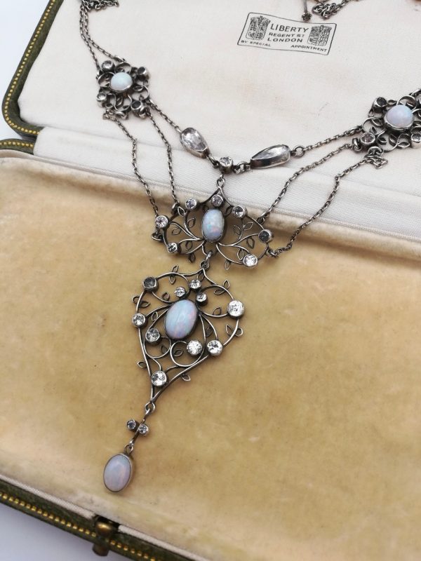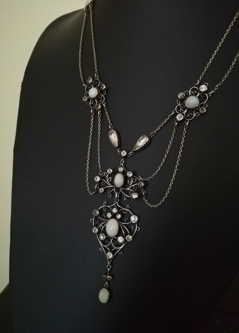 Museum piece Arthur and Georgie Gaskin Arts and Crafts festoon necklace with opals and rock crystal c1905